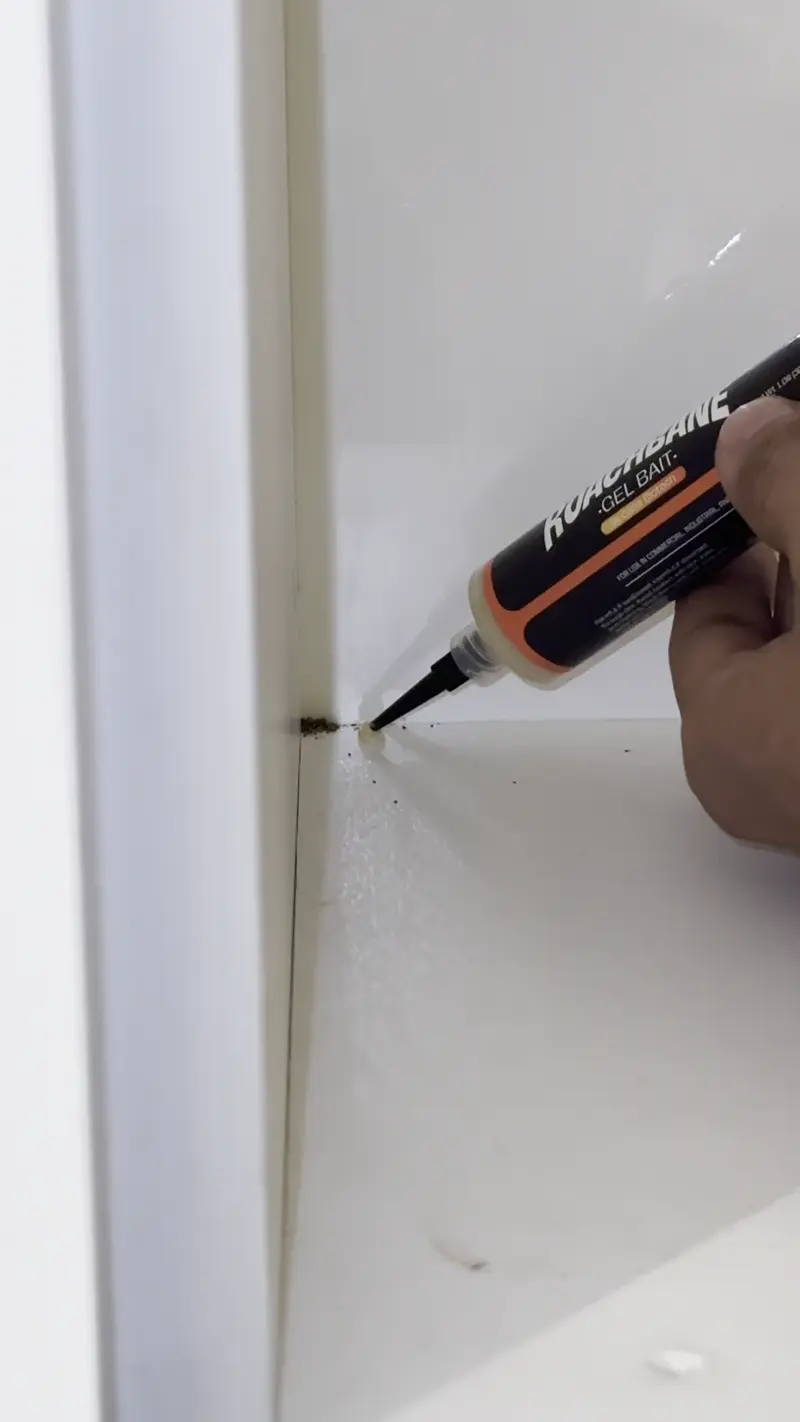 Apply the gel bait in strategic spots like under sinks, behind appliances, and in corners. Do not forget hard to reach areas such as crack and crevices, as cockroaches love to hide there.