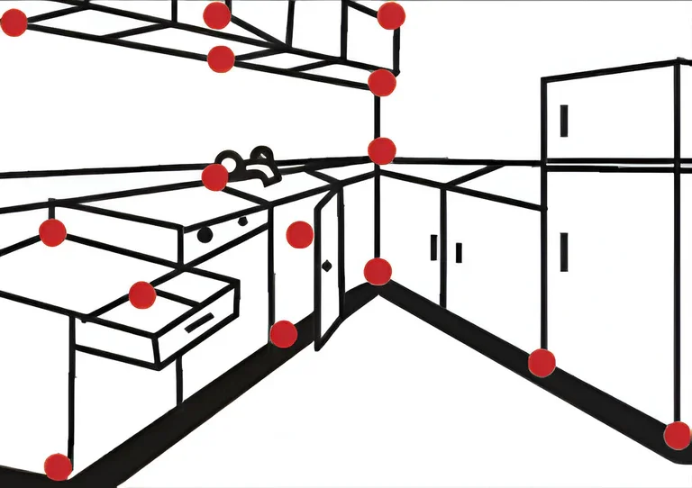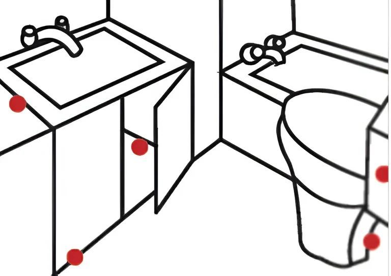 Focus on your kitchen and bathroom, especially behind appliances, under sinks, around cracks and crevices, and inside cabinets.